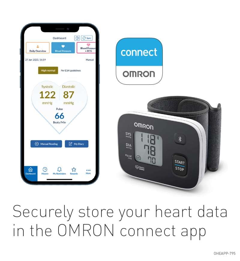 Yes. The RS3 Intelli IT is fully compatible with the OMRON Connect app, allowing automatic Bluetooth syncing of all readings for long term tracking, data sharing with healthcare professionals, and easy trend analysis.