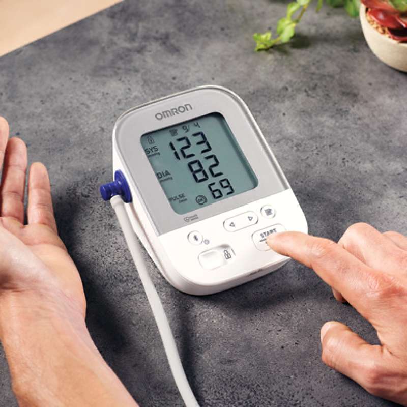- Press the ‘O/I START’ or ‘START’ button to begin the blood pressure reading.